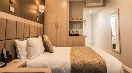 A newly renovated suite features a queen-sized bed, Plasma television, and iPod docking station. A mood lighting and wooden business desk along with a deep leather chair offer a unique ambience and comfort of your stay. Modern Toiletries and walk-in shower.
